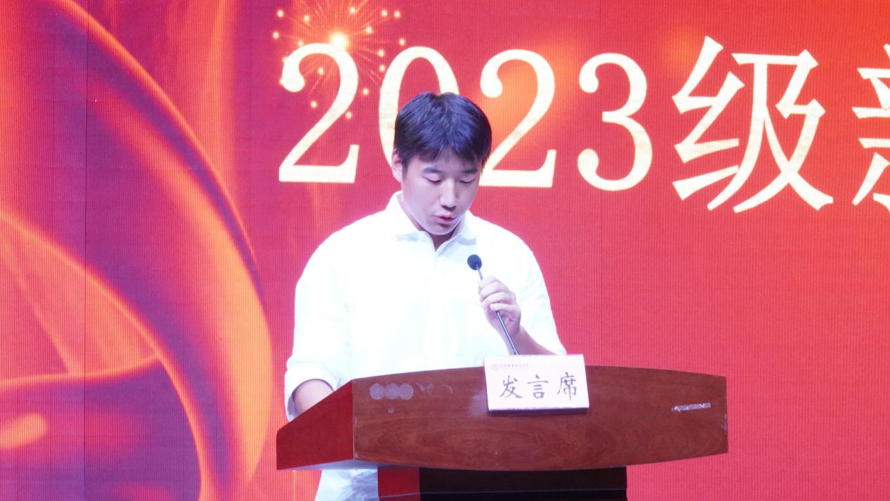 新生代表王欣同学表示要努力拼搏,夯实专业基础,用实际行动践行新时代青年的使命担当。