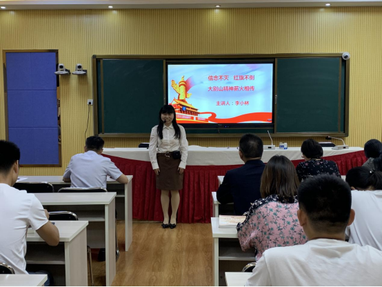 2021年6月1日下午四时,马克思主义学院李小林副教授来到beat365正版唯一官网党员活动室,以《信念不灭,红旗不倒——大别山精神薪火相传》为题,为全体党员同志讲授专题党课。