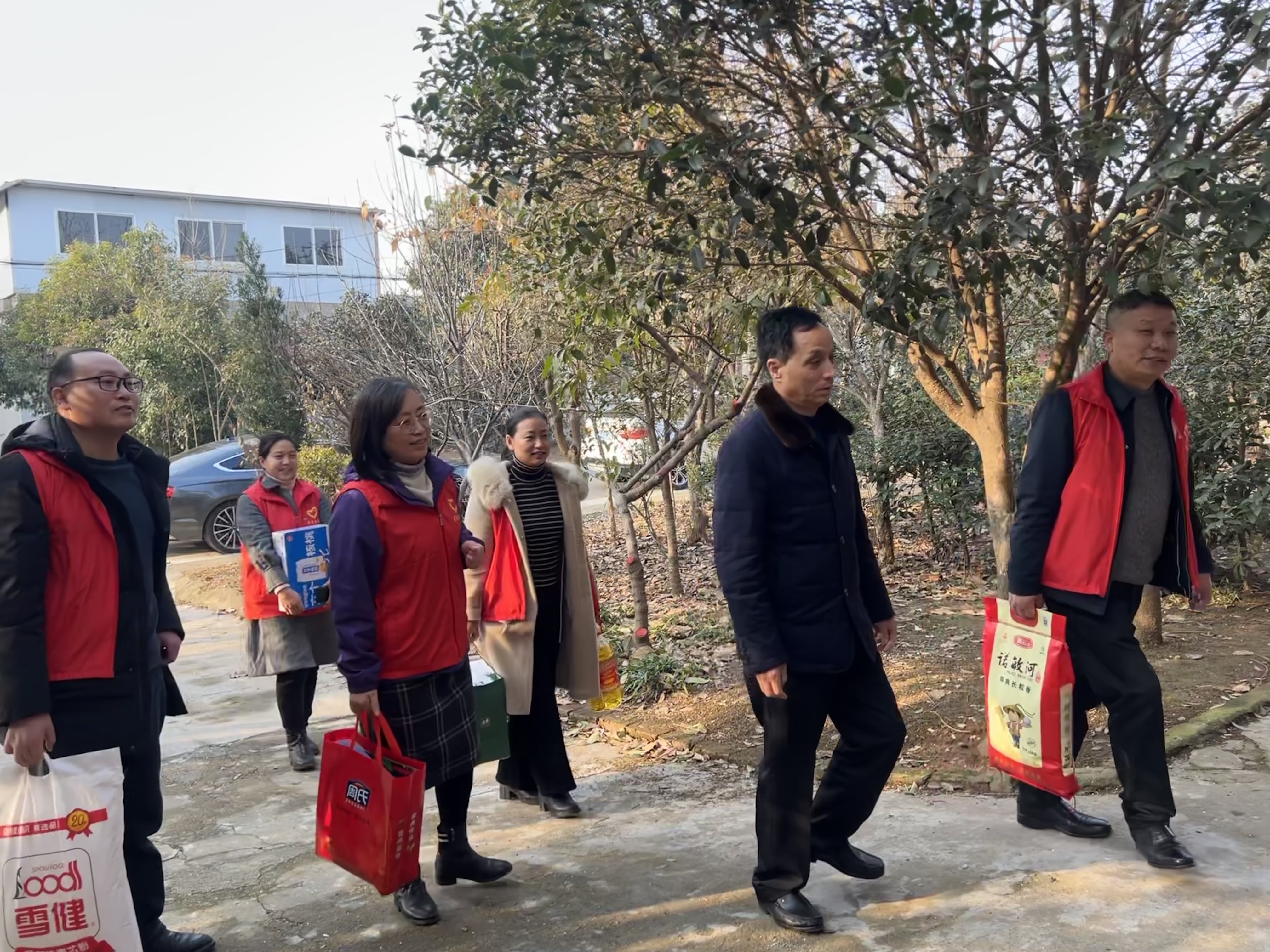 随后,我校一行6人在卢明良书记的陪同下前往两个较困难的家庭进行慰问。一个家庭里爷爷离世,奶奶年迈多病,妈妈离家出走,父亲和俩孩子在智力上存在一定缺陷,生活贫困;另一个家庭为高龄孤寡老人,没有劳动力和稳定收入。党员们向这两户贫困家庭传达了学校党委的深切关怀并送去慰问物品,鼓励他们振奋精神,战胜眼前的困难。