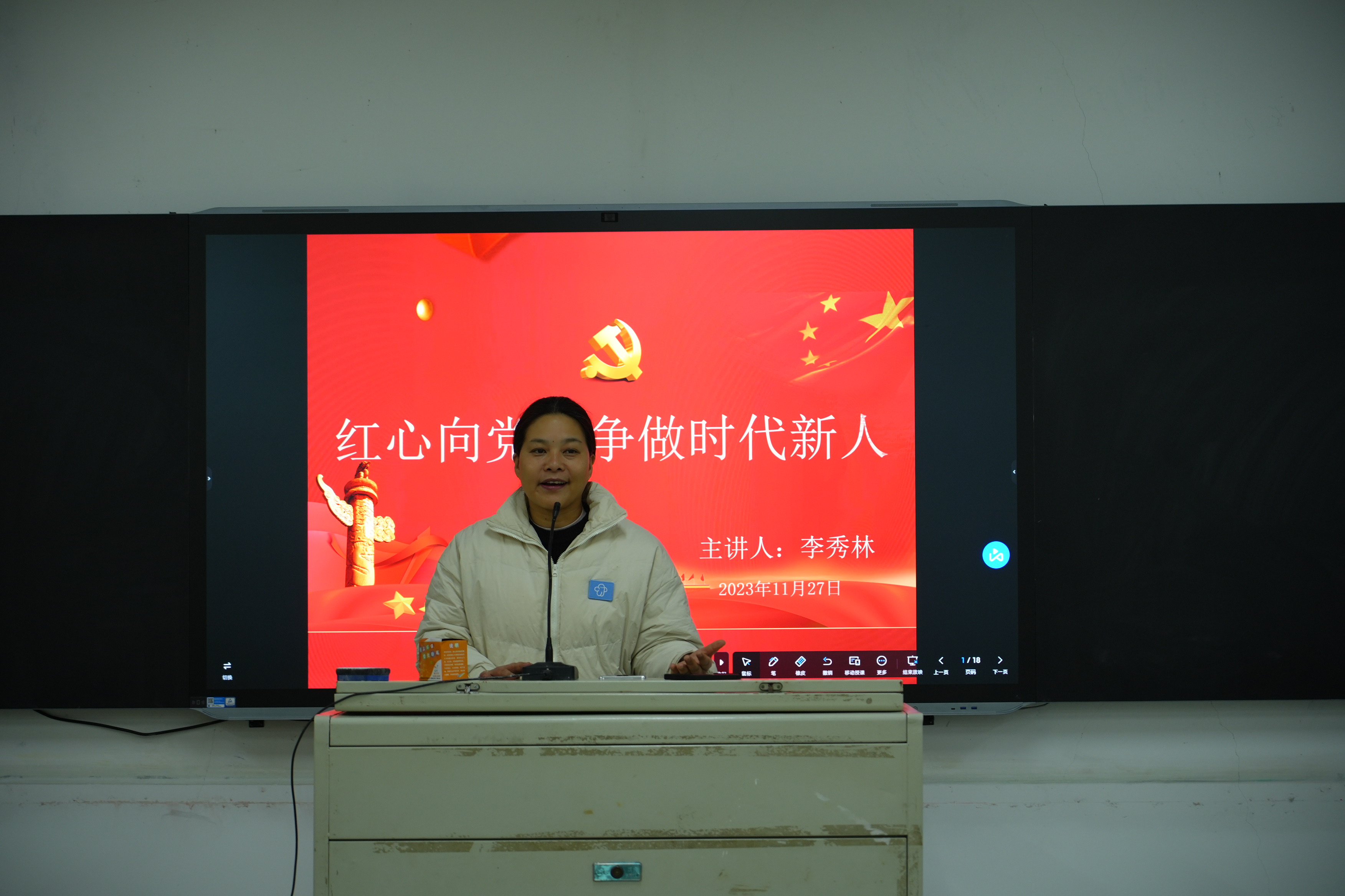 为深入贯彻党的二十大精神,2023年11月27日,beat365正版唯一官网在2018教室开展“红心向党,争做时代新人”主题党课及干部培训会。参加本次活动的有beat365正版唯一官网党总支副书记李秀林,beat365正版唯一官网学生会干部,各社团社长以及各班班长。