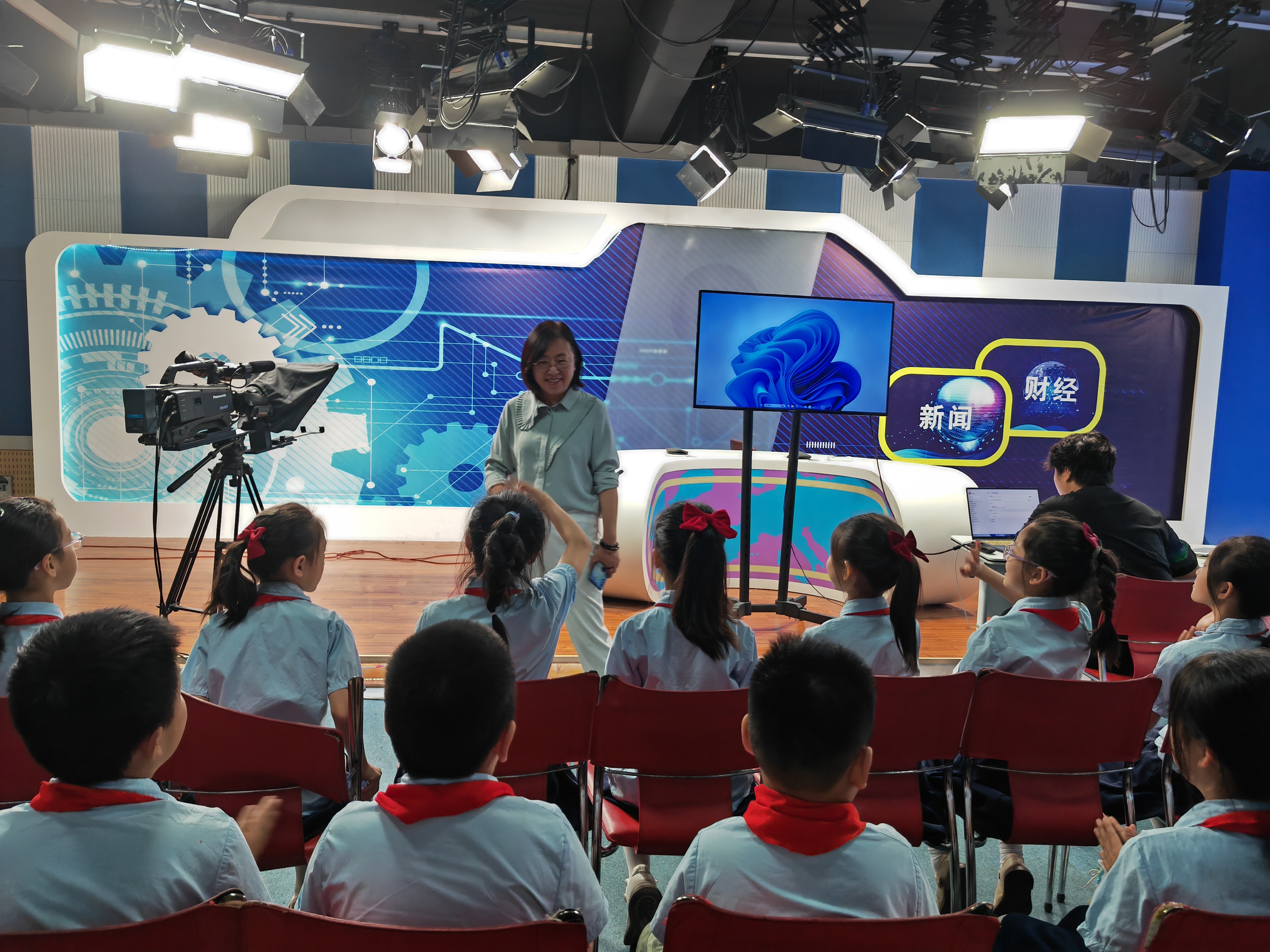 在活动现场,beat365正版唯一官网学生党支部优秀党员带领小学生们参观了融媒中心演播厅,了解了广播电视节目的制作流程。