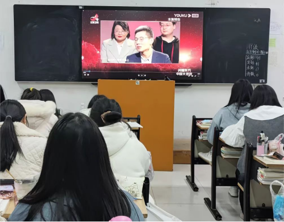 在观影过程中,同学们仔细聆听主持人的讲解,被其所讲内容深深吸引。