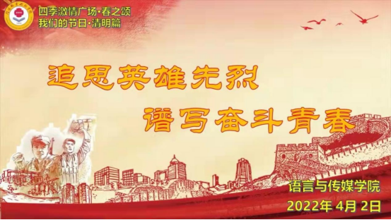 据悉,本次“四季激情广场·春之诵”线上朗诵会也是为贯彻落实学校“八个一”工程而精心准备的文化盛宴。14年来,“四季激情广场”活动高擎红色育人和文化育人的大旗,和语传师生一起成长,曾荣获河南省高校校园文化建设成果三等奖。相信在本次活动的鼓舞与激励下,语传师生们将会凝心聚力、砥砺前行,坚定理想信念,激发使命担当,奋勇前进创造新的辉煌!
