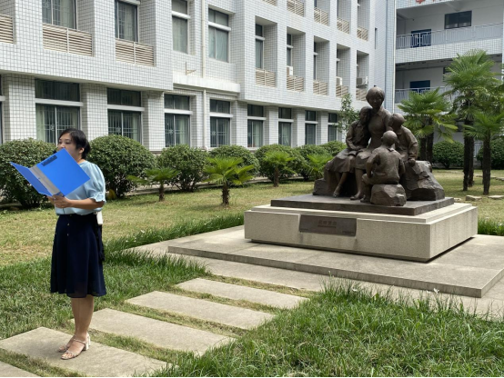 金秋九月,硕果飘香。阳光下的桃李芳华园肃穆而宁静。学院党总支副书记李秀林首先为大家解说了“桃李芳华”塑像的含义,“山”字形的构图致敬了李芳老师高山仰止、永垂不朽的高尚精神,又将闲适而坐的充满阳光般温暖的“妈妈老师”气质生动展现,人民教师李芳春风化雨、润物无声的平凡瞬间仿佛跨越时空,让观仰教师们再次感受到她立德树人、爱生如子的大爱师德。