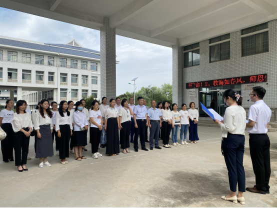 “我宣誓,我志愿做一名光荣的人民教师,忠诚人民教育事业……为人师表,乐于奉献,为实现中华民族伟大复兴而努力奋斗。”活动最后,由宗华老师领誓,全体党员教师重温教师誓词,大家表示将会以更加昂扬的精神状态和务实的工作作风,坚守信念、不负时代,争做党和人民满意的“四有好老师”和“四个引路人”。