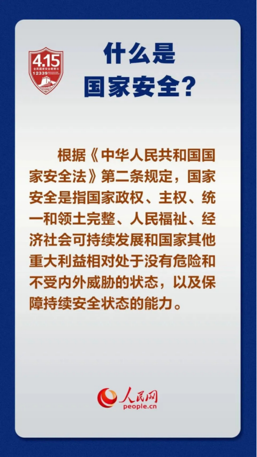 2023年4月15日是我国第八个全民国家安全教育日。国家安全不仅关乎国家利益,也关乎每个公民的切身福祉。自觉关心、维护国家安全,是每个公民的基本义务,国家安全的真正实现有赖于人人参与、人人可为。