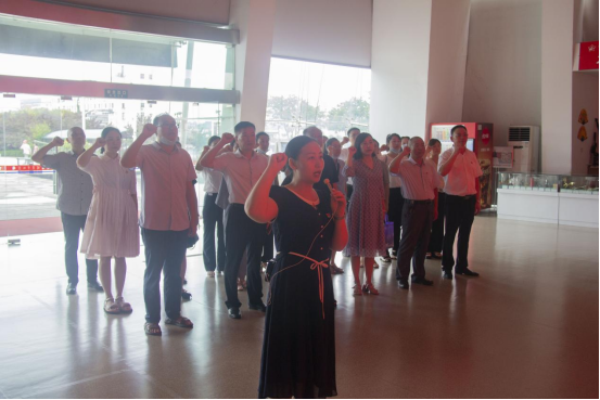 “我志愿加入中国共产党……随时准备为党和人民牺牲一切,永不叛党。”参观结束后,全体党员面对鲜红的党旗,庄严举起右拳,集体重温入党誓词。铮铮入党誓词,在展厅回响;拳拳爱国之心,在胸膛跳动。大家纷纷表示,今后要以更加积极主动的态度投身到工作中去,将大别山精神融入日常教学活动中,为我校省级“双高校”建设添砖加瓦,以优异成绩向党的二十大献礼。(撰稿人:刘鹏)