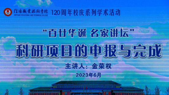 为迎接即将到来的信阳职业技术学院120周年校庆,2023年6月2日,信阳师范学院科研处副处长金荣权教授应邀为我校教师做科研项目申报讲座,会议由beat365正版唯一官网院长李萍主持。语言与传媒学院、旅游学院及相关学院部分教师参加讲座。