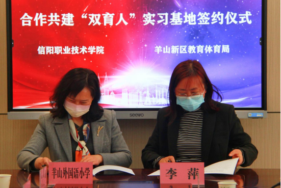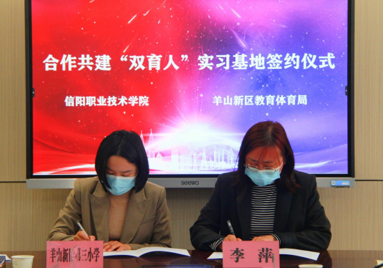 随后,在羊山新区教育局全体领导班子的见证下,信阳职业技术学院与与会的13所中小学校签订了合作共建协议。